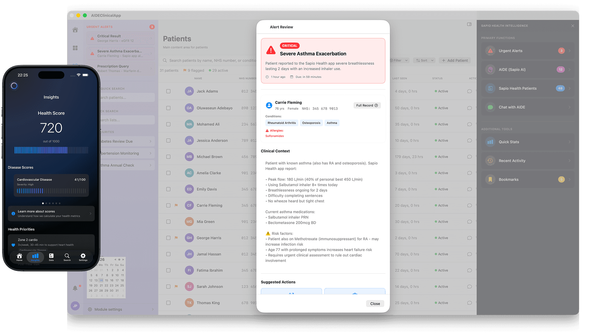 Sapio Health effortlessly integrates apps like Apple Health, Garmin, ChatGPT Health, and more to provide an comprehensive picture of the patient's health.